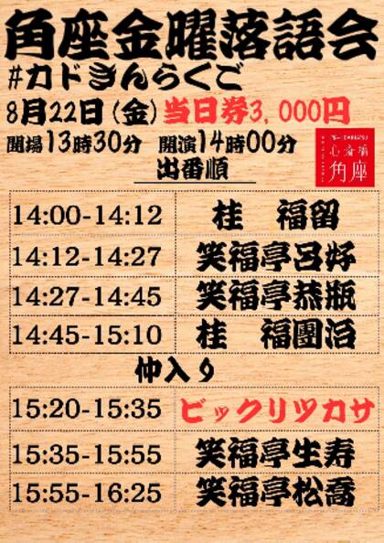 角座金曜落語会 -#カドきんらくご-