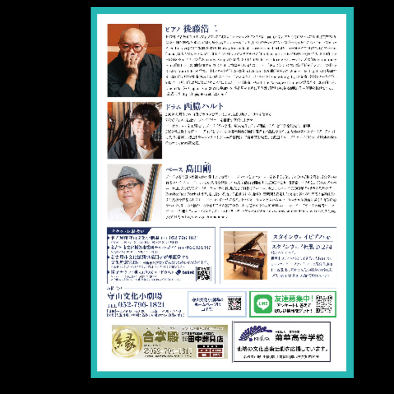 ◆出演:後藤浩二(ピアノ)、西脇ハルト(ドラム)、島田剛(ベース)