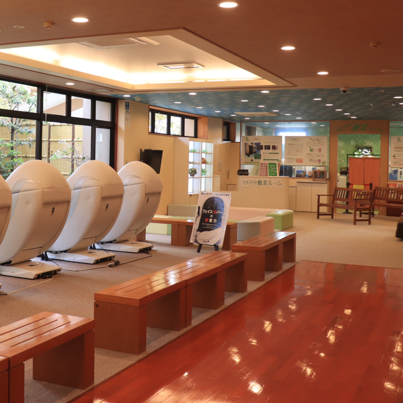 源泉から浴槽までの距離も近く、地下2,000mから湧出した源泉を使用。塩分を豊富に含んだお湯がからだを包み、からだの芯まで温まります。塩分による保温効果の恩恵も受けることから、別名「温まりの湯」と呼ばれております。また、水素イオン濃度はpH8.1。弱アルカリ性のお湯はやわらかく、皮膚の余分な角質をやわらかくすることを得意とすることから「美肌の湯」とも呼ばれております。花鳥風月源泉風呂極上のお湯をご堪能ください。広々とした館内には、エステやマッサージ、さわやか酸素ルームなど、温泉のほかにも癒しの施設がずらり。