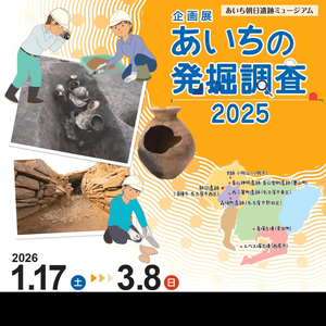愛知県内では、毎年多くの遺跡で県や市町村等による発掘調査がおこなわれており、貴重な発見が相次いでいます。今回の企画展では、県内各地で実施された最新の発掘調査による出土品や調査成果を紹介するとともに、学識経験者を招いた講演会や、展示で紹介する遺跡の調査担当者による報告会などを開催し、県内の考古学の最新情報を分かりやすくお伝えします。
