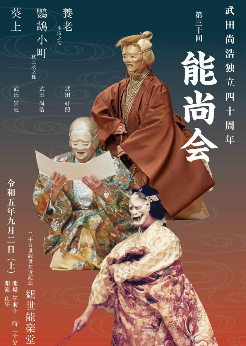 今回は9月2日(土)に行われる能尚会の三曲(養老・鸚鵡小町・葵上)をテーマに徹底解説を行います。