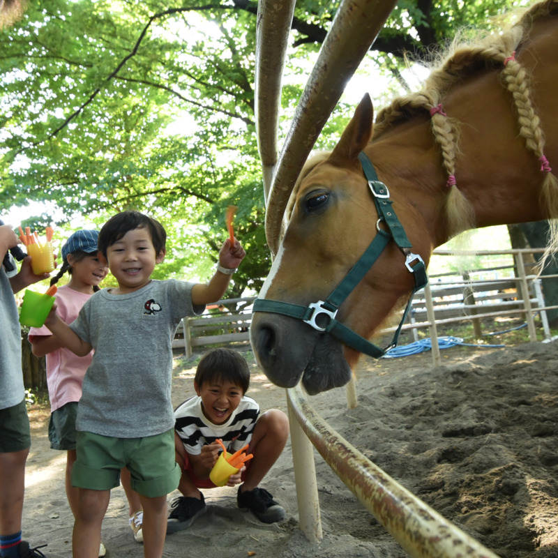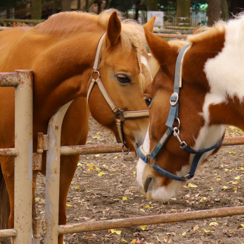 ・馬はおとなしい動物ですが、大変臆病で驚きやすい性質です。そばで大きな声を出したり、物を投げたりしないでください。また不意に体を触ったり、たたいたりするのも危険なので控えましょう。
