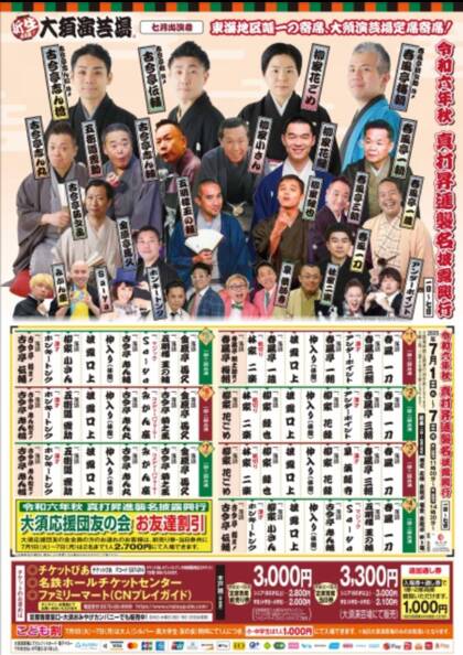 (1日から7日の大須演芸場主催の定席寄席のみ適用)
